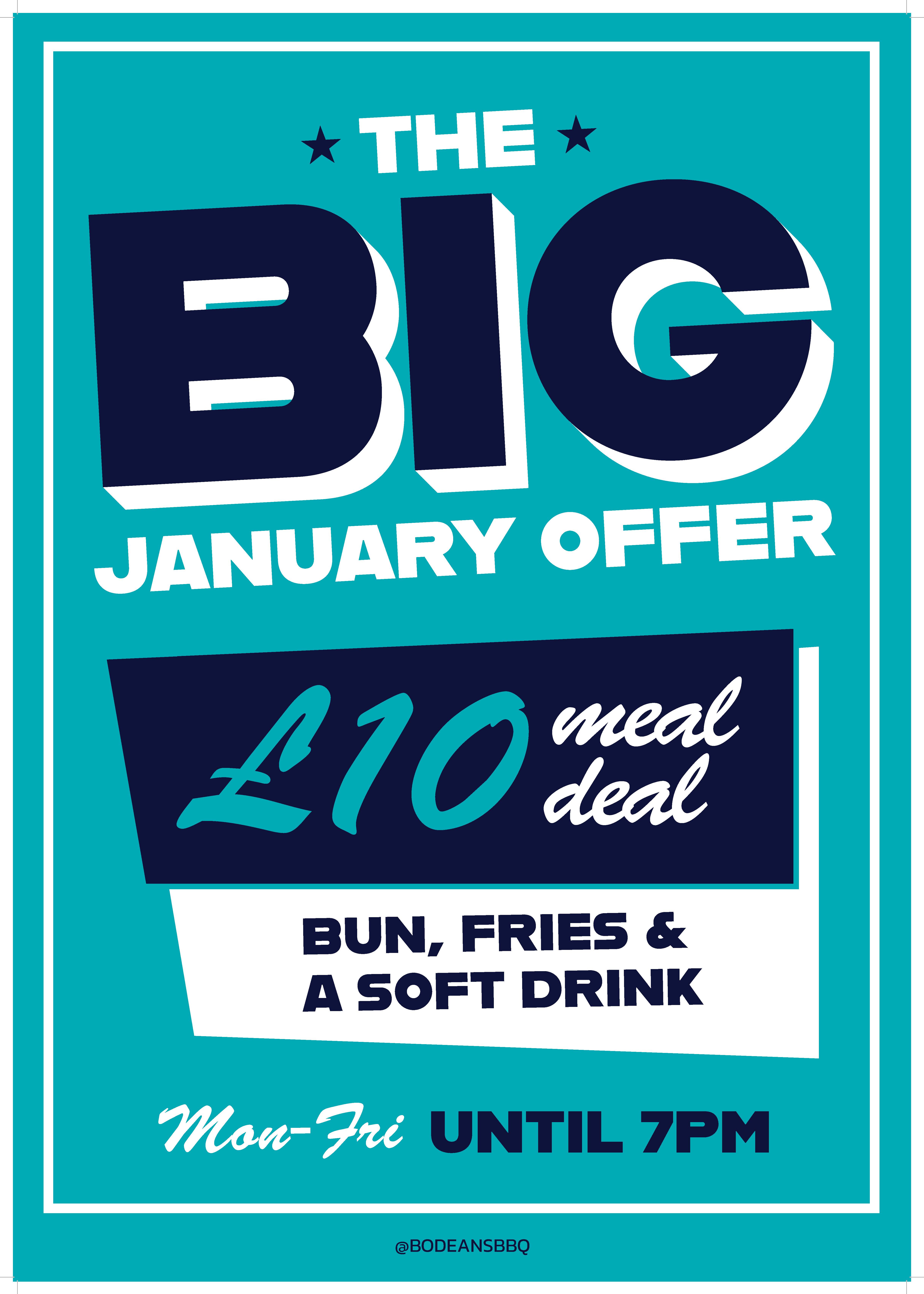 All January, Monday – Friday until 7pm, come by and get our £10 Meal Deal.